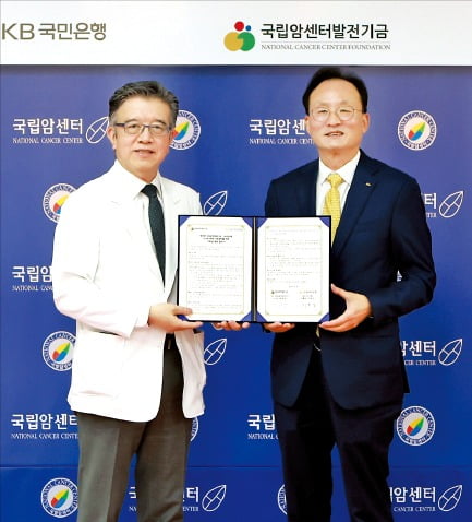 [포토] 국민은행-국립암센터 시니어 건강 증진 협약 입력2025.08.27 17:15 수정2025.08.28 01:05 지면A18 국민은행은 지난 26일 국립암센터발전기금과 ‘시니어의 건강한 내일을 위한 기부 협약’을 맺었다고 27일 발표했다. 양측은 시니어의 건강 증진과 암 예방·관리·치료를 지원하기 위해 맞춤형 사회공헌사업을 함께 펼칠 예정이다. 이환주 국민은행장(오른쪽)이 경기 고양 국립암센터에서 열린 협약식에서 양한광 국립암센터발전기금 이사장과 협약서를 들고 있다. 국민은행 제공 Facebook
