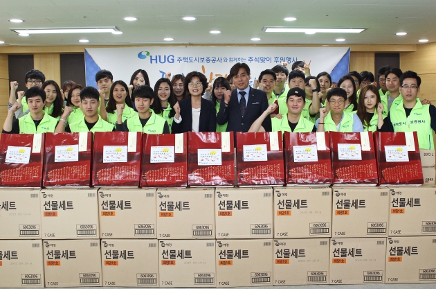 HUG(주택도시보증공사, 사장 김선덕)는 22일 임윤순 부산울산지사장을 비롯한 직원 및 대학생 봉사단 30여명이 부산 남구종합사회복지관에서 저소득 어르신 및 성인 지적장애인 200여명과 함께 ‘추석맞이 이웃사랑 나눔봉사’를 실시했다.