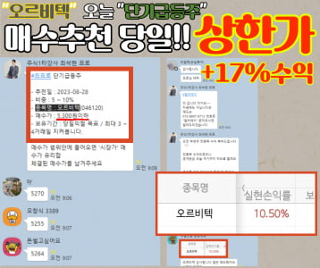 ◈상한가만 고집하는 체험방 “오르비텍”적중◈ 다음종목 입장과 동시에 추천