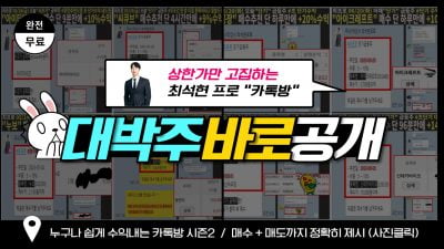 ◆ 급등임박 추천주, 카톡방에서 무료로 받기! 10%미만은 수익이라 말하지 않습니다. (클릭) [비번 : 9999]